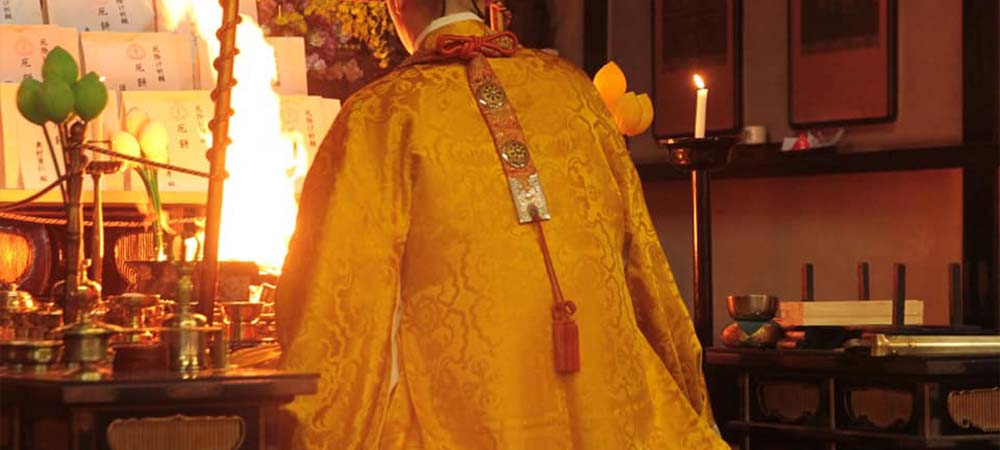 護摩とは、弘法大師により伝えられた真言密教秘伝の修法です。